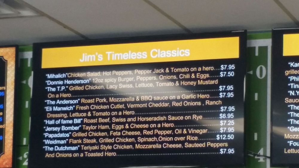 Timeless classics such as the Eli Manwich and the Hall of Fame Bill bring a hearty twist that leaves taste buds enthralled. The deli embraces a casual ambiance, perfect for families and groups, while offering conveniences like takeout and outdoor seating. With its focus on quality, Jim's is sure to become a local favorite for unforgettable meals!